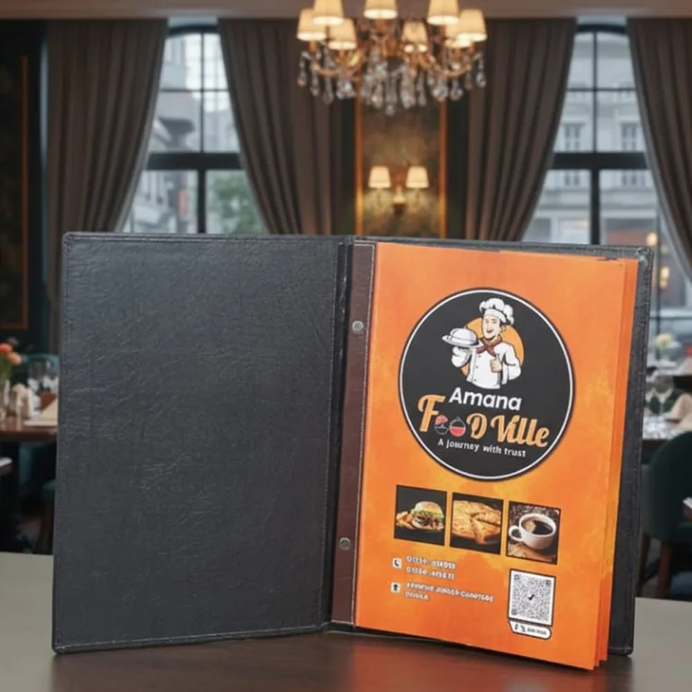There are many menu printing services in Bangladesh offering a wide range of solutions for different business needs. Popular options include restaurant menu printing, café menu printing, hotel menu printing, takeaway menus, table-top menus, folded menus, and custom menu printing. Businesses can choose from budget-friendly paper menus to premium laminated or hardcover menus.