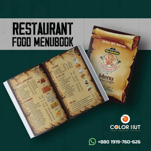 Color Hut believes that customer satisfaction is more important than profit. We provide premium quality menu printing services to our customers. That makes the menu too luxurious.