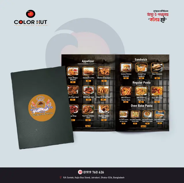 We know how busy you are improving your business and handling the customers. Color Hut tries to reduce your work. Just drop your menu book design and print order and receive the delivery.